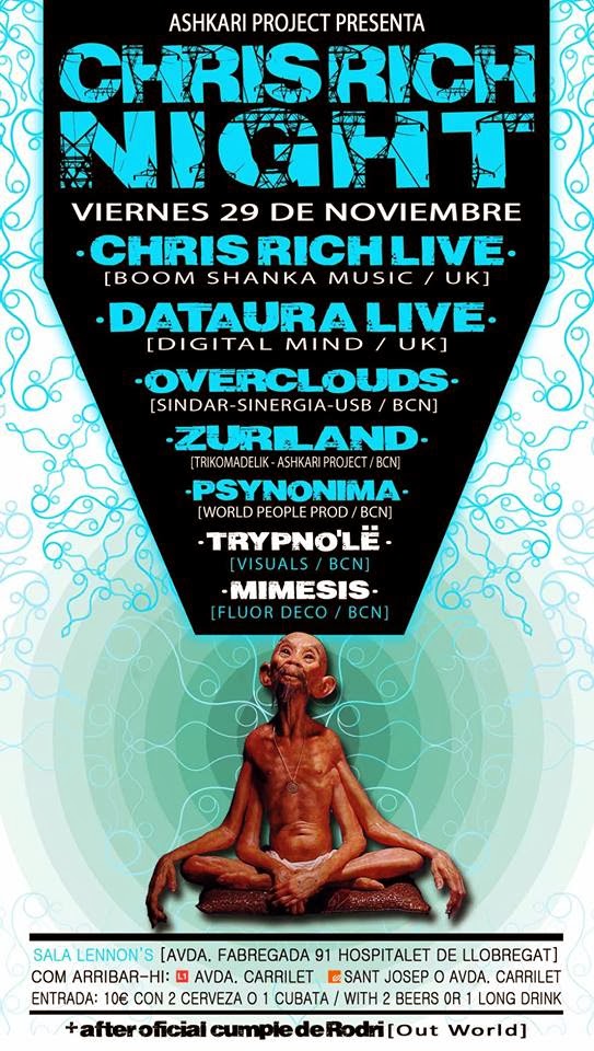 noviembre 28, 2013 Line-Up 00:00 A 01:30 OVERCLOUDS01:30 A 02:30 DATAURA02:30 A 03:30 ZURILAND03:30 A 04:30 CHIRS RICH04:30 A 06:00 PSYNONIMA